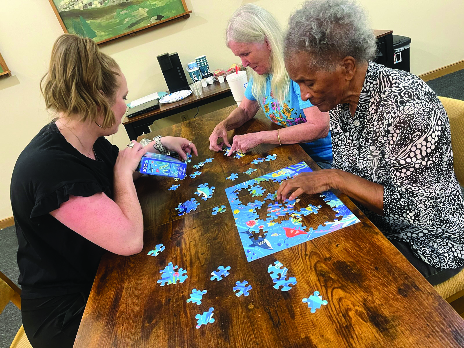 The Adult Day Center offers a safe, supportive environment where trained staff and volunteers welcome participants for a day of carefully planned activities aimed at promoting cognitive stimulation and social interaction.